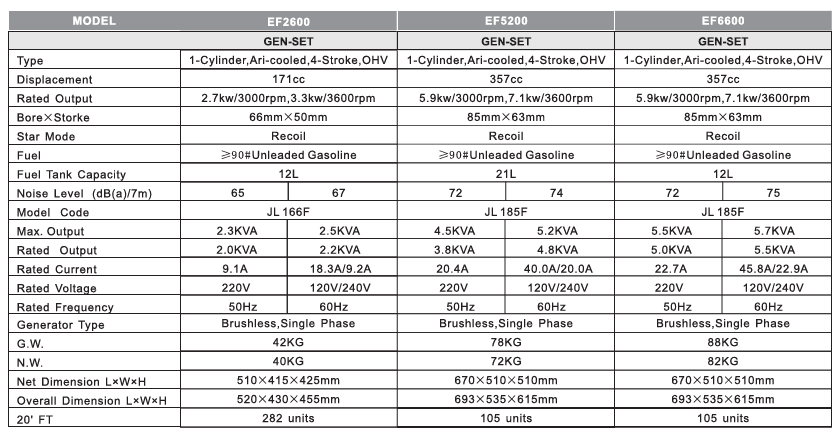 Generator Type | Brushless,Single Phase | Brushless,Single Phase | Brushless,Single Phase |